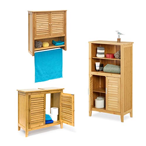 Relaxdays 3 TLG Badeinrichtungs Set LAMELL, Waschbeckenunterschrank, Badschrank mit Türen, Hängeschrank mit…