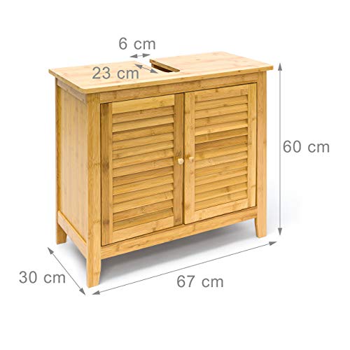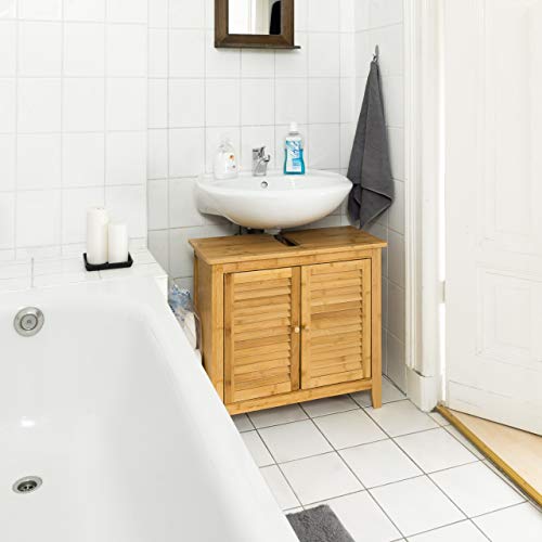 Geräumiger Waschbeckenunterschrank aus natürlichem Bambus: Schafft weiteren Stauraum in Ihrem Badezimmer und nimmt dabei selbst wenig Platz in Anspruch – Maße H x B x T: ca. 60 x 67 x 30 cm