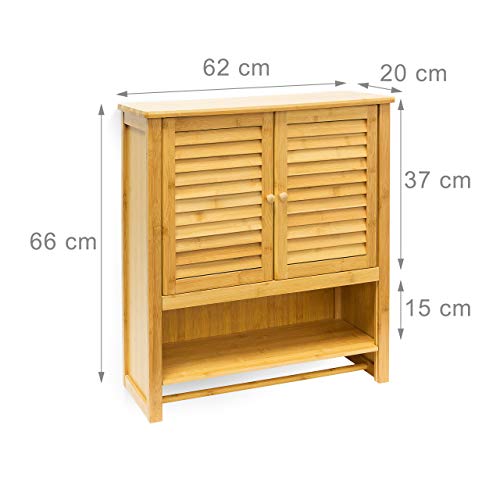 Badschrank zum Hängen: Mit breiter Ablage und Handtuchhalter – 2 Schranktüren mit Lamellen und 2 Schrankfächern – Boden entnehmbar – H x B x T: ca. 66 x 62 x 20 cm