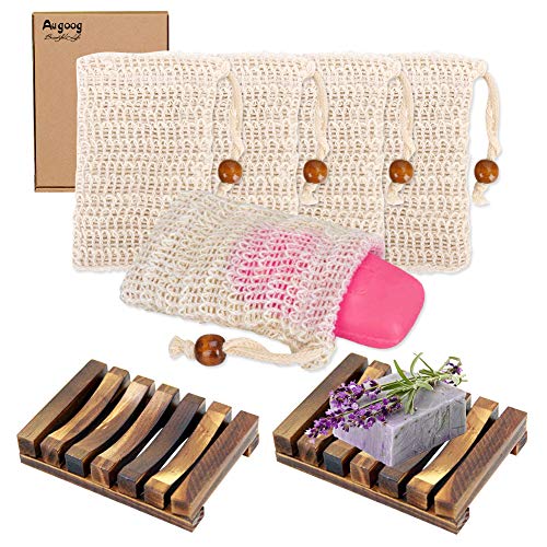 5 Pcs Seifenbeute Natur | 2Pcs Seifenschale Holz Dusche | Seifensäckchen Sisal Aufschäumen und Trocknen der Seife… günstig online kaufen