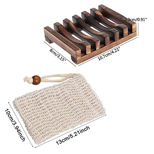 5 Pcs Seifenbeute Natur | 2Pcs Seifenschale Holz Dusche | Seifensäckchen Sisal Aufschäumen und Trocknen der Seife…