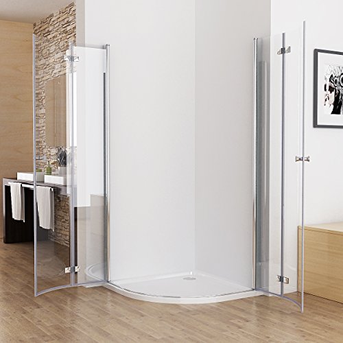90 x 90 x 197 cm Duschkabine Runddusche Duschabtrennung Falttür Echtglas Viertelkreis NANO DS