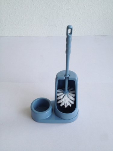 WC Bürstengarnitur aus pflegeleichtem Kunststoff, Farbe bermudablau, seitlich ist eine Abstellfäche für Putzmittel angebracht, zum auf den Boden stellen. Kombinieren Sie diesen Artikel mit einem anderen Produkt mit Versand durch ADOB: Sie bezahlen nur einmal Versandkosten