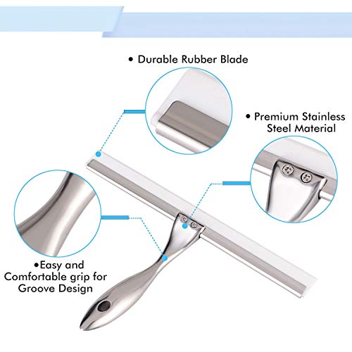 -Aikzik stylischer duschwischer edelstahl, duschabzieher mit saugnapf und S haken ist einfach zu installieren leicht zu entfernen oder neu zu positionieren und einfach zu lagern.