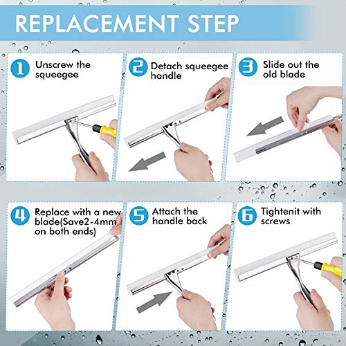 【Abnehmbarer Silikon】 Das profi duschabzieher wird durch Schrauben befestigt, und die duschwischer silikon sind abnehmbar und austauschbar. Enthält 2 weiße Silikon wischlippe.