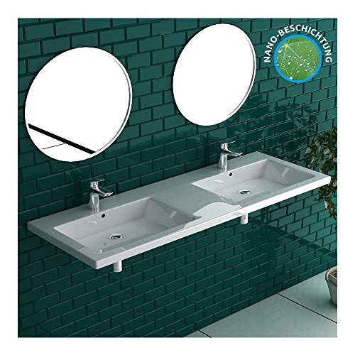Alpenberger Modernes Doppelwaschbecken aus hochwertiger Sanitärkeramik inkl. Nano-Beschichtung mit Überlauf | Klasse… günstig online kaufen
