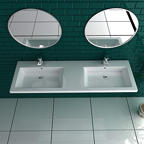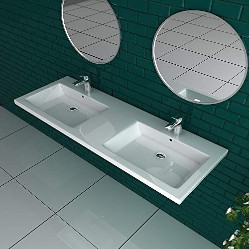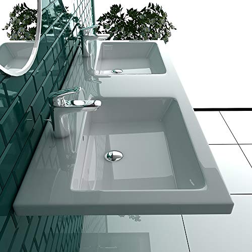 ✔️ ERSTKLASSIGE QUALITÄT – Unser moderner Doppel-Waschtisch aus hochwertiger Sanitärkeramik passt sich dank des zeitlosen Designs ideal Ihrem Badezimmer an und bringt ein stimmungsvolles Ambiente und zeitlosen Look in Ihr Perfektes Bad ein