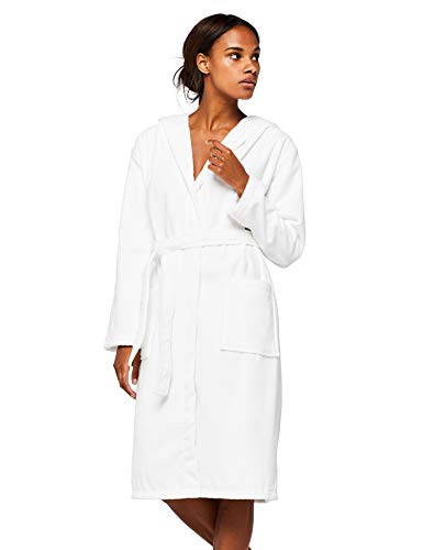 Amazon-Marke: Iris & Lilly Damen Luxuriöser Velours-Frottee Bademantel mit Kapuze
