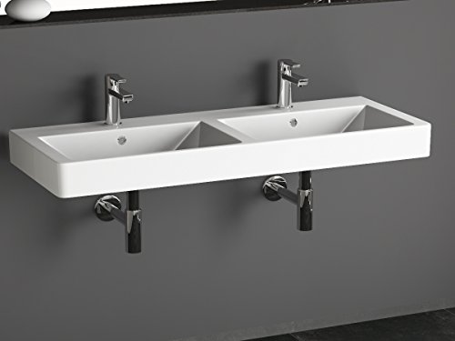 Aqua Bagno Design Doppelwaschbecken aus Keramik Doppelwaschtisch Hängewaschbecken KP.120.2 | 120 x 45 cm