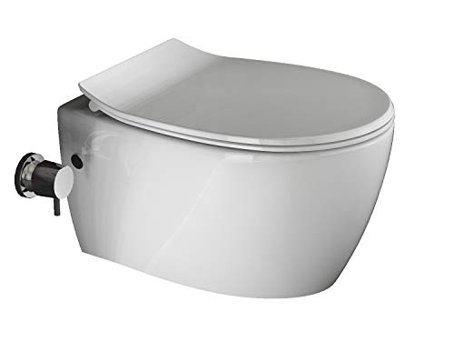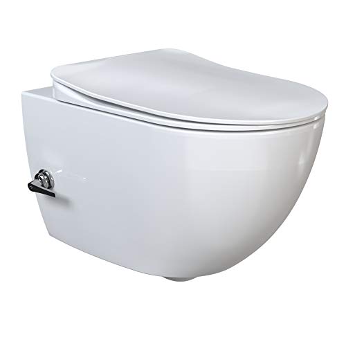 Aqua Bagno | Design Dusch-WC | Taharet | Inkl. abnehmbarer Softclose Sitz | Hänge-WC | Toilette mit Bidet-Funktion…