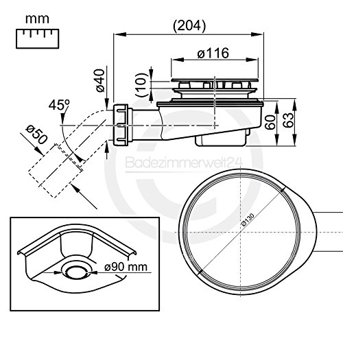 Die Aquabad Ablaufgarnitur Serie (Kompatibel mit Aquabad Duschwannen Comfort: Ultima, Villa, Praktica, Forta), eignet sich für Duschwannen mit einem Ablaufloch von 90 mm. Die geringe Bauhöhe von 63 mm ermöglicht eine schnelle Montage, ohne die Ablaufleistung zu verringern. Der einfach zu reinigende und herausnehmbare Geruchverschluss gibt zusätzlich Sicherheit. Weiters Merkmal ist die hohe thermische und chemische Beständigkeit des verwendeten Materials (Polypropylen). Zusätzlich dazu erhalten Sie den passenden Flexanschluss für mehr Flexibilität auch bei schwierigen Montagebedingungen.