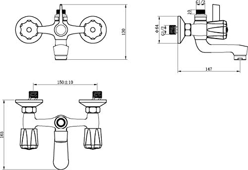 ‘aquaSu® Zweigriffmischer Standard Plus für Wanne | Zweigriff Wannenarmatur | Badewannenarmatur | Chrom