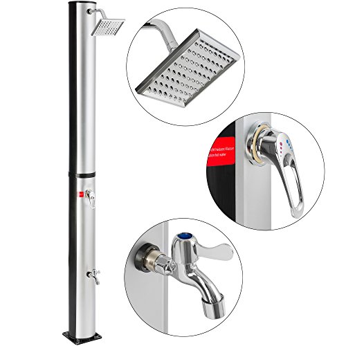 Arebos Solardusche | 37 Liter | 199 cm | mit integriertem Thermometer | Silber-Schwarz | eckiger Duschkopf | mit… günstig online kaufen