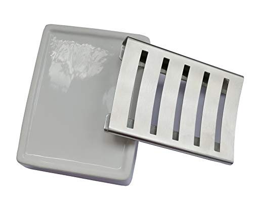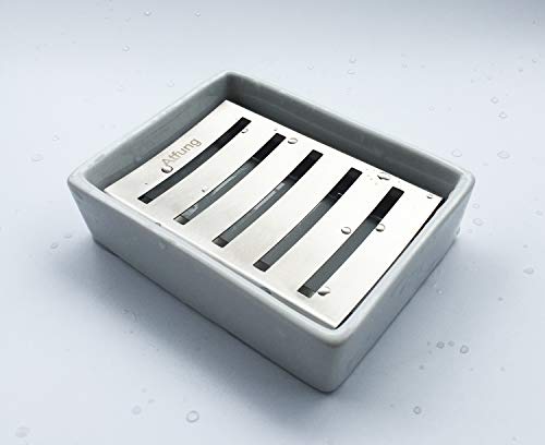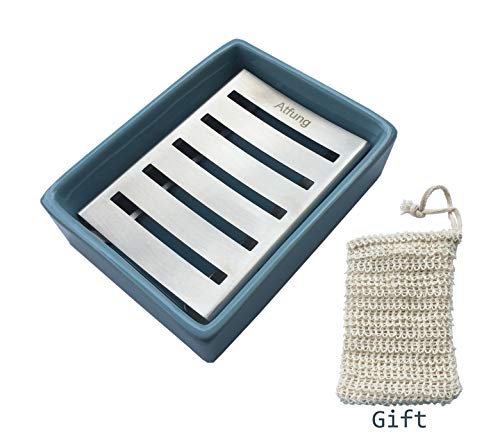 Atfung Seifenschale Keramik + Edelstahl Seifenhalter Seifenkiste für Bad und Dusche (Blau) günstig online kaufen