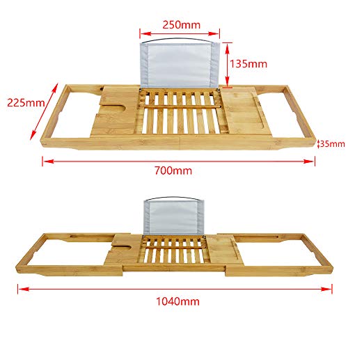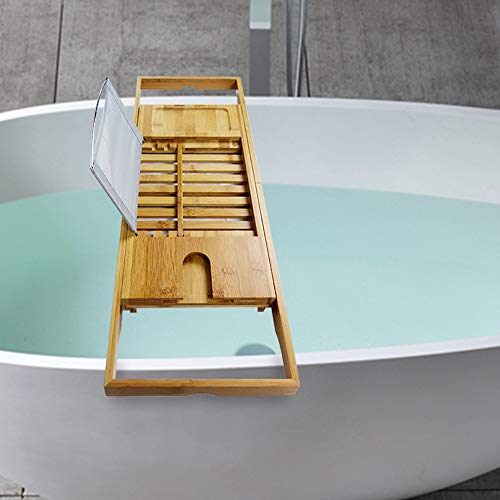 Aufun Badewannenablage aus Bambus längenverstellbare Badewannenbrett mit Weinglas-Halter, Klammertuch, Tablett für iPad…