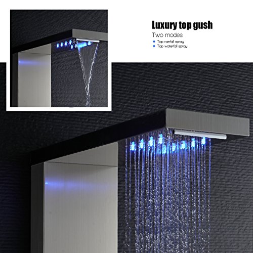Auralum Edelstahl Duschpaneel LED Temperatur Bildschirm mit Handbrause Massagedüsen, Wasserfall und Niederschlag LED…