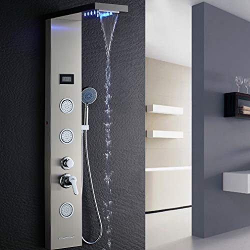 Auralum Edelstahl Duschpaneel LED Temperatur Bildschirm mit Handbrause Massagedüsen, Wasserfall und Niederschlag LED… günstig online kaufen