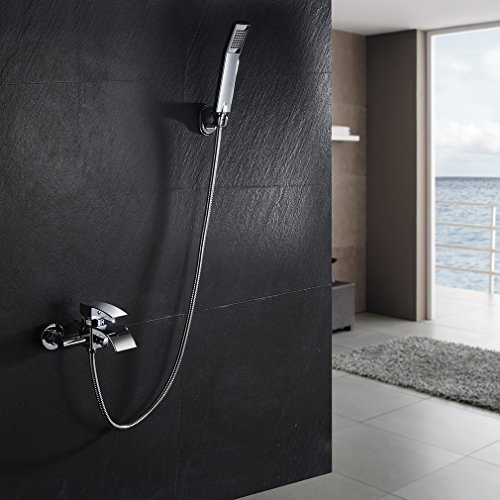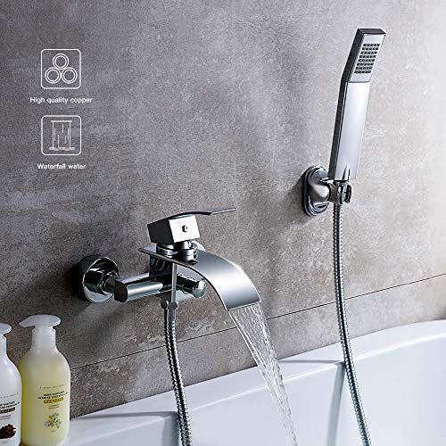 Auralum® Mitigeur bain Badewannenarmatur Wasserfall mit Duschkopf Wasserspar Messing Chrom für Badezimmer