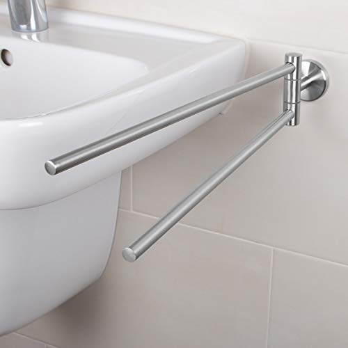 Der Handtuchhalter der Bad-Serie PIAZZA hält Handtücher stilvoll und sicher für Sie bereit. Durch die 2 schwenkbaren Arme können Sie die Stangen Ihren Begebenheiten im Badezimmer anpassen und frei justieren.