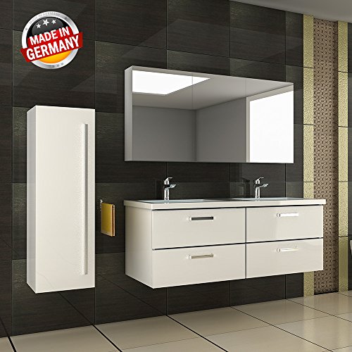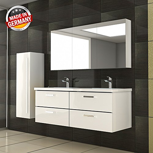 bad1a Weiß Badmöbelset Doppelwaschbecken und Unterschrank Komplettset Spiegelschrank – Hochschrank Waschtisch mit… günstig online kaufen