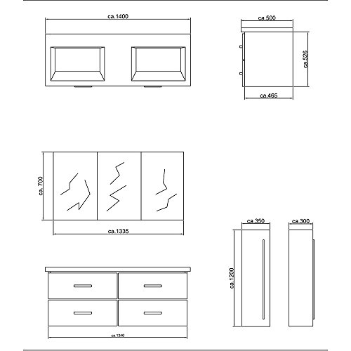 Lieferumfang: Waschbecken+Unterschrank,Spiegelschrank, Hochschrank ohne Zubehör
