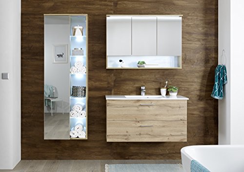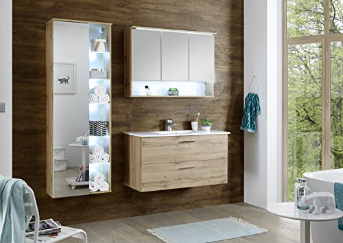 moebel-guenstig24.de Badmöbel Best 3-TLG Badezimmer Set Badmöbel Badezimmermöbel Wildeiche Beleuchtung