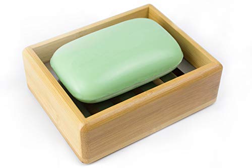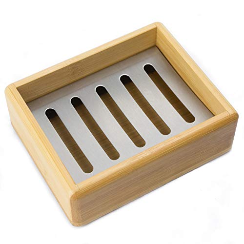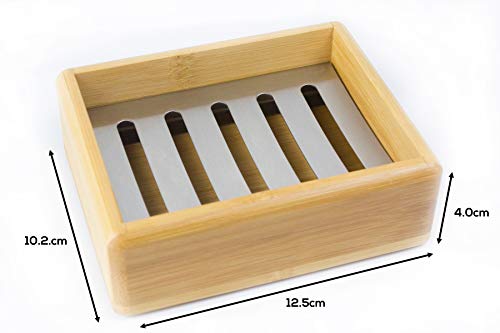 Bambus Seifenschale mit Abtropfgitter aus Edelstahl | Seifenhalter Bambus für Bad, Küche und Toilette | Natürliche ECO…