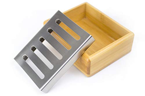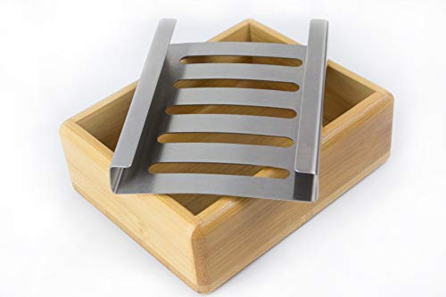 Bambus Seifenschale mit Abtropfgitter aus Edelstahl | Seifenhalter Bambus für Bad, Küche und Toilette | Natürliche ECO… günstig online kaufen