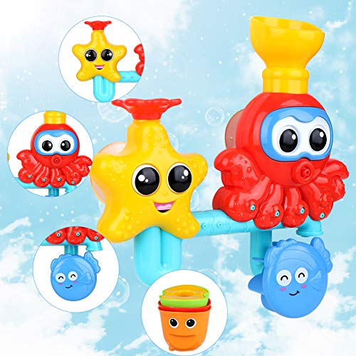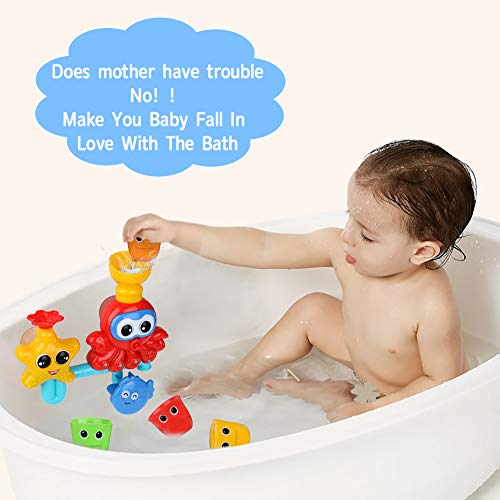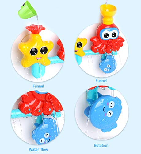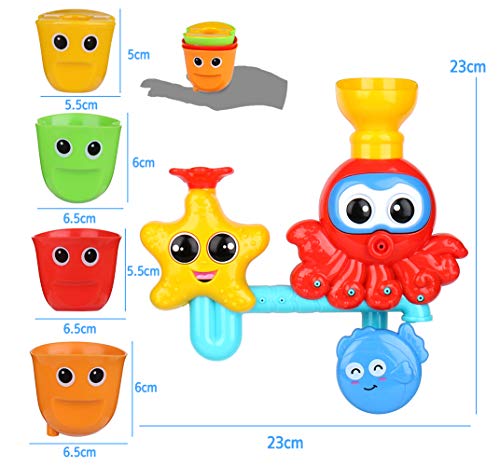 [Spaß-badespielzeug mit 4 stapelförmigen Bechern] – lustiges wasser spielzeug erregt die Aufmerksamkeit Ihres Babys. Denn wenn sie Wasser abschöpfen und in die Oberseite des badewannenspielzeug gießen, hat es einen Haufen verschiedener Löcher, um das Wasser herausfließen zu lassen, und die Augen von Tintenfisch und Seesternen, der rotierende Fisch macht Ihr Baby zum Vergnügen. Das Baden ist keine Herausforderung mehr, Babys werden die Zeit zum Baden genießen!