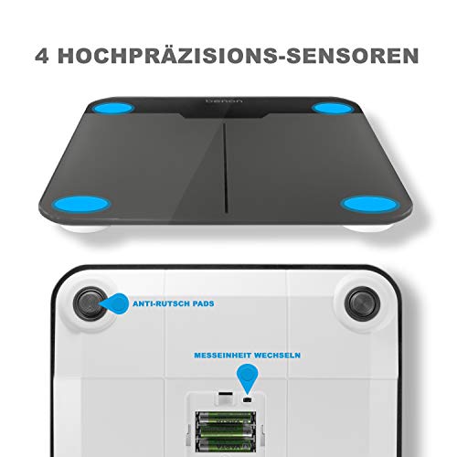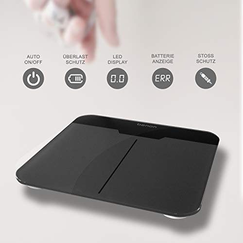 benon Personenwaage Digital Grau, Safety-Glas (30x30cm), 5kg-180kg, LED Display (kg lb st)