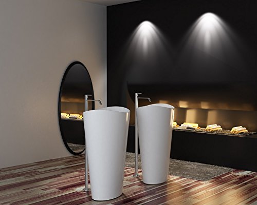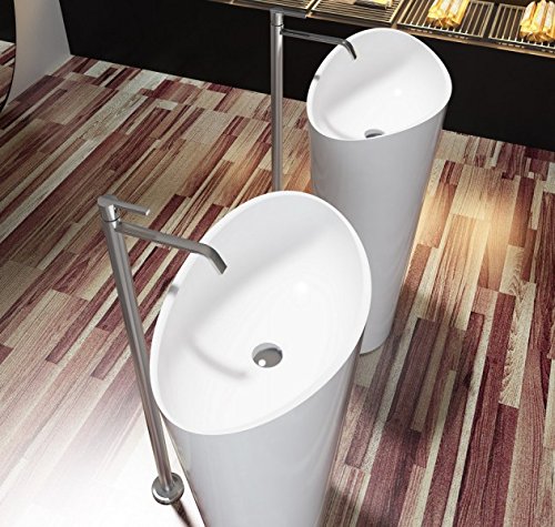 Bernstein Badshop Freistehendes Waschbecken aus Mineralguss WAVE PB2175 Standwaschbecken weiß – 60 x 37 x 90 cm – Solid…