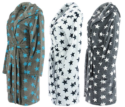 Brandsseller Damen Bademantel mit Sternen – in den Größen: S/M – L/XL – in der Farben: Anthrazit/Weiß günstig online kaufen