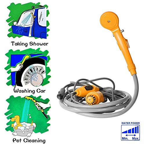 BTSSA Tragbare Campingdusche – 12-V-Handdusche mit 4-Meter-Autoleitungsquelle und 2-Meter-Wasserleitung | Verstellbarer… günstig online kaufen