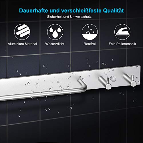 DeYoun Handtuchhalter mit 2 Haken, Aluminum Bad Handtuchstange für 2 Handtücher und Mehr | Wandmontage Gebürstet 40 Cm… günstig online kaufen