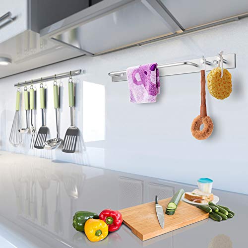 In der Küche trocknen auf der Stange Geschirrtücher oder Tischtücher. Die Haken bieten Platz für Topflappen. Im Flur dient sie als Garderobenstange, etwa für nasse Schals oder Regenjacken. An den Haken hängst Du Schlüssel, Regenschirm oder Kappe, damit Du sie nicht vergisst.
