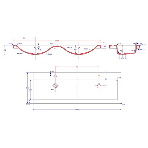 Maße: Waschtischunterschrank 143,5/51,5/50,5 cm Höhe des Schrankes inkl. Waschbecken: 56,5 cm Waschbeckenbreite: 143,5 cm Die Waschtischtiefe: 50,5 cm