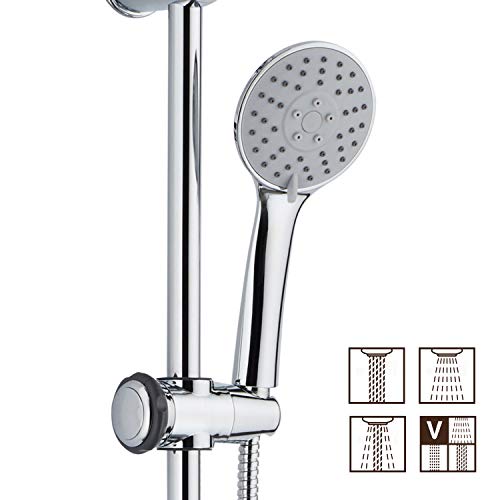 Duschset mit einer massiven Metall-Duschstange und einer Gesamtlänge von ca. 101 cm. Verstellbare Wandhalterungen (max. 84 cm), somit können vorhandene Bohrlöcher genutzt werden.