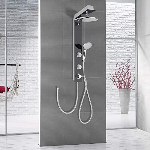 Duschpaneel mit Glas Duschsäule Schwarz Regenschauer Handbrause Massage Sanlingo günstig online kaufen