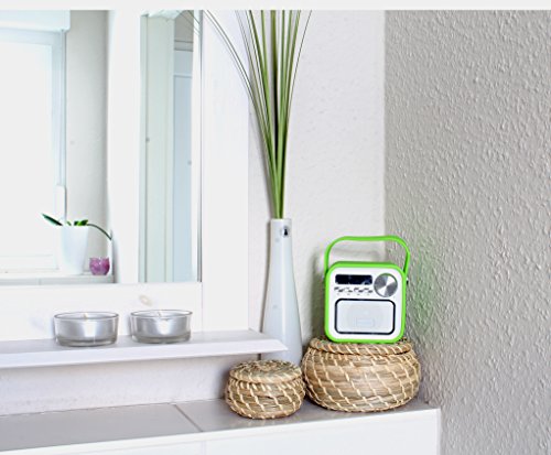 Eine Bedienungsanleitung erklärt Dir die Paarung, Feinjustierung und Bedienung der transportablen Bluetooth Box anschaulich. Durch die umfangreichen Verbindungsmöglichkeiten, eine empfangsstarke Antenne und einen stabilen Akku ist zudem sichergestellt, dass Du die Box auch als Küchenradio, Badradio oder Kinderradio unkompliziert nutzen kannst. Auch die Uhrzeit wird auf dem LED-Display der kleinen Soundbox angezeigt.