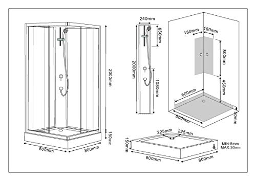 EISL ORS8080AL Duschkabine Komplettduschkabine Graz 1 mit Eckeinstieg, 80 x 80 cm, Komplettdusche, Fertigdusche…