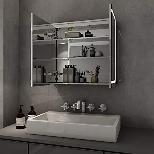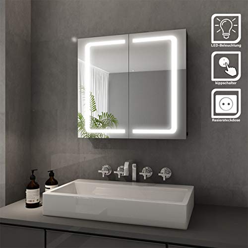 Elegant Bad Spiegelschrank mit Beleuchtung LED Licht Badezimmer Spiegelschrank Bad Hängeschrank mit Steckdose und… günstig online kaufen