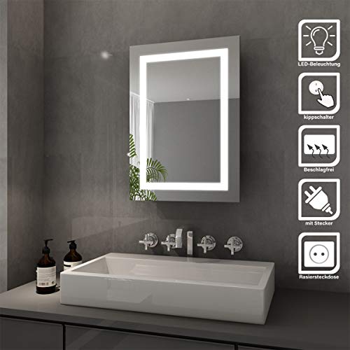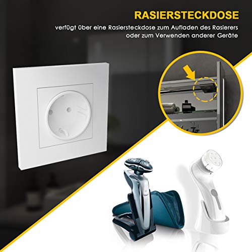 Funktion: LED-Beleuchtung: Energiesparende und effiziente LED-Beleuchtung beleuchtet Ihr Badezimmer perfekt (kaltweißes Licht (6400K)); Rasiersteckdose: verfügt über eine Rasiersteckdose zum Aufladen des Rasierers oder zum Verwenden anderer Geräte
