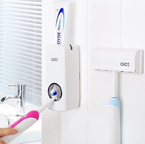 Der automatische Zahnpastaspender besteht aus ABS + Kunststoff.Sie können schnell, einfach und sauber genau die richtige Menge von Zahnpasta direkt auf Ihrem Pinsel. Zahnbürstenhalter hält Ihre Zahnbürste sicher, sauber. Vented Abdeckung hält Borsten, trocken und Sanitär.