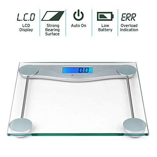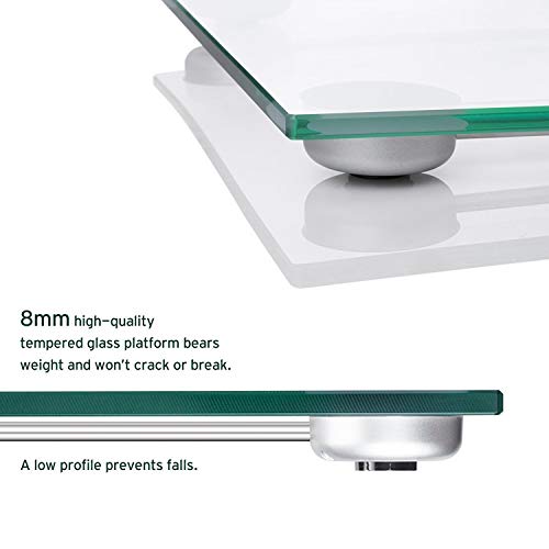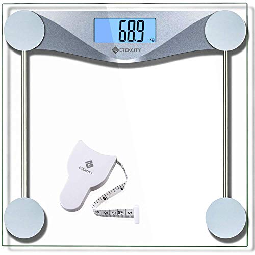 Etekcity Digitale Personenwaage, Waage Personen mit Hochpräzise Sensoren aus gehärtetem Glas (8mm), Inkl. Maßband, Step…