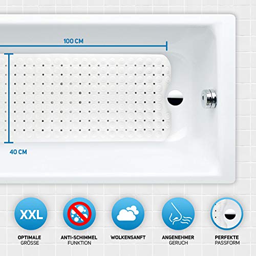 ✅ DIE PERFEKTE GRÖßE – Die Wanneneinlage Rutschmatte weiß ist mit 100x40cm besonders groß und lang, um maximale Antirutsch Sicherheit zu gewährleisten.