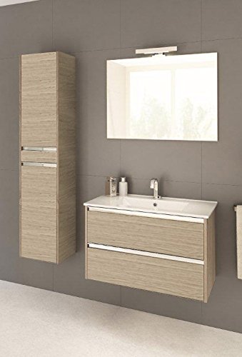 Fonte Badmöbel-Set/Komplettbad 4-teilig, mit Waschtisch 80 cm, mit Dekor Trüffelbuche