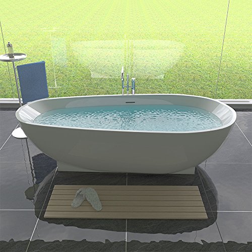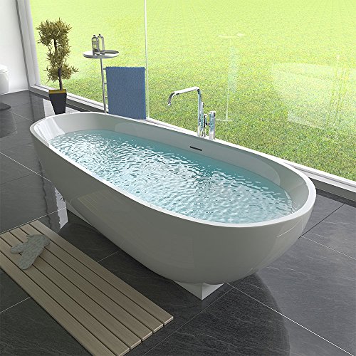 Maße: 1700 x 800x 580, Überlauf bereits vormontiert bereits installiert und enthalten, Form: Oval Standbadewanne