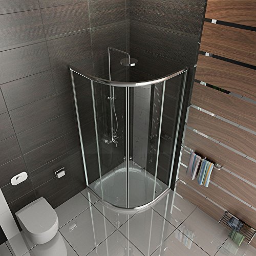 ✔️ HOCHWERTIG UND MODERN- Viertelkreis Dusche mit Easy Clean Einscheibensicherheitsglas (ESG) | Die Duschkabine ist TÜV Rheinland geprüft | Breitan-/ Schrägenausgleich ist bis zu 20 mm möglich | Hochwertige Messingscharniere und Aluminiumprofile | Mit 2 Schiebeelementen und 2 Festteilen asymmetrisch angeordnet