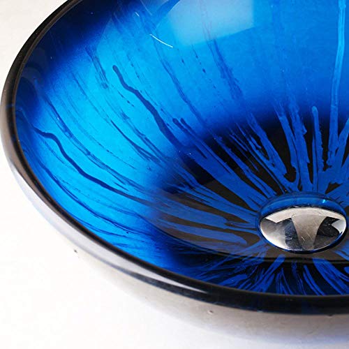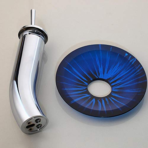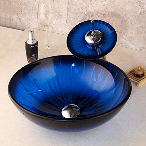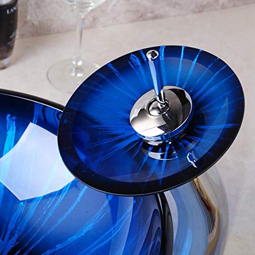 ghyjf Waschbecken aus gehärtetem Glas Waschbecken Streifen blau mit Wasserfall Wasserhahn Waschbecken Set Runde Becken…