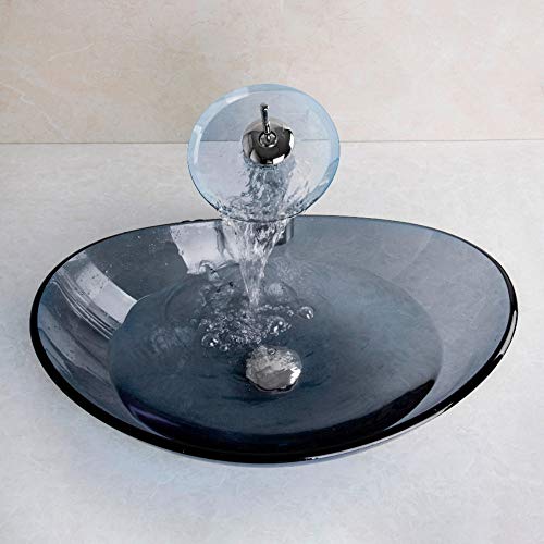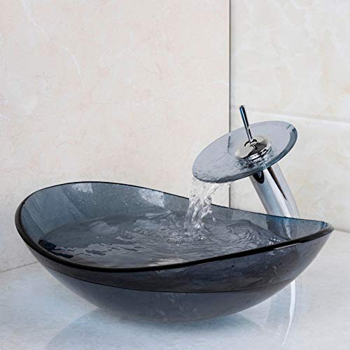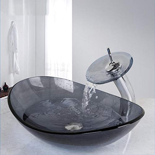 Grau Waschraum Becken Schiff Vanity Sink & Badarmatur Gehärtetem Glas Waschbecken Waschbecken Wasserhahn Set Mit Ablauf günstig online kaufen